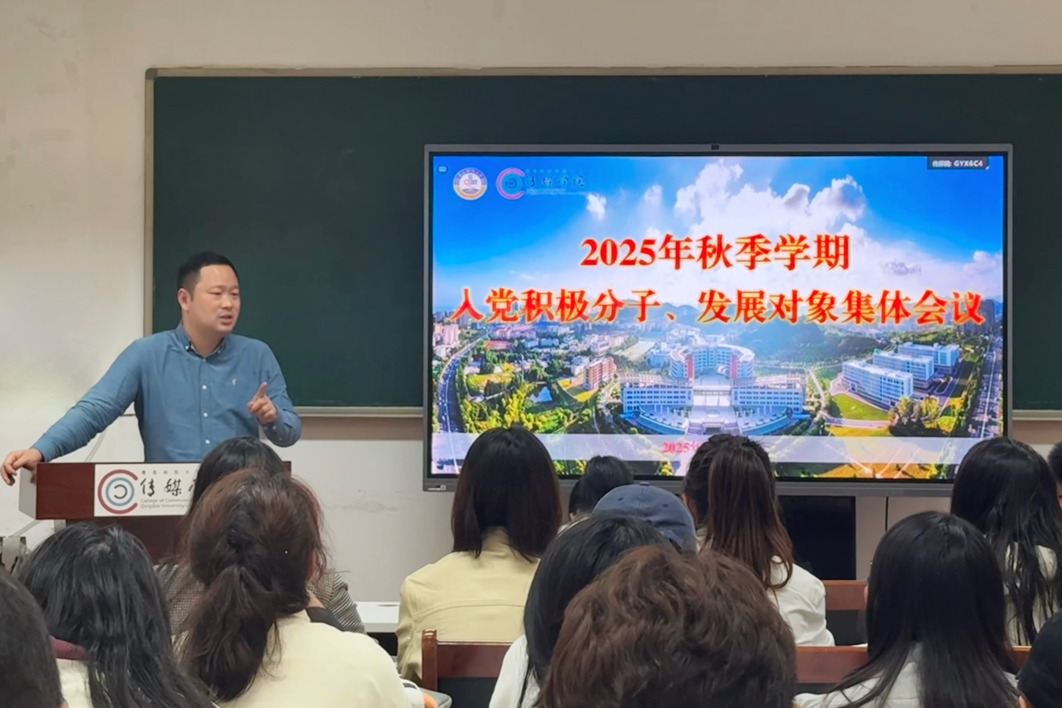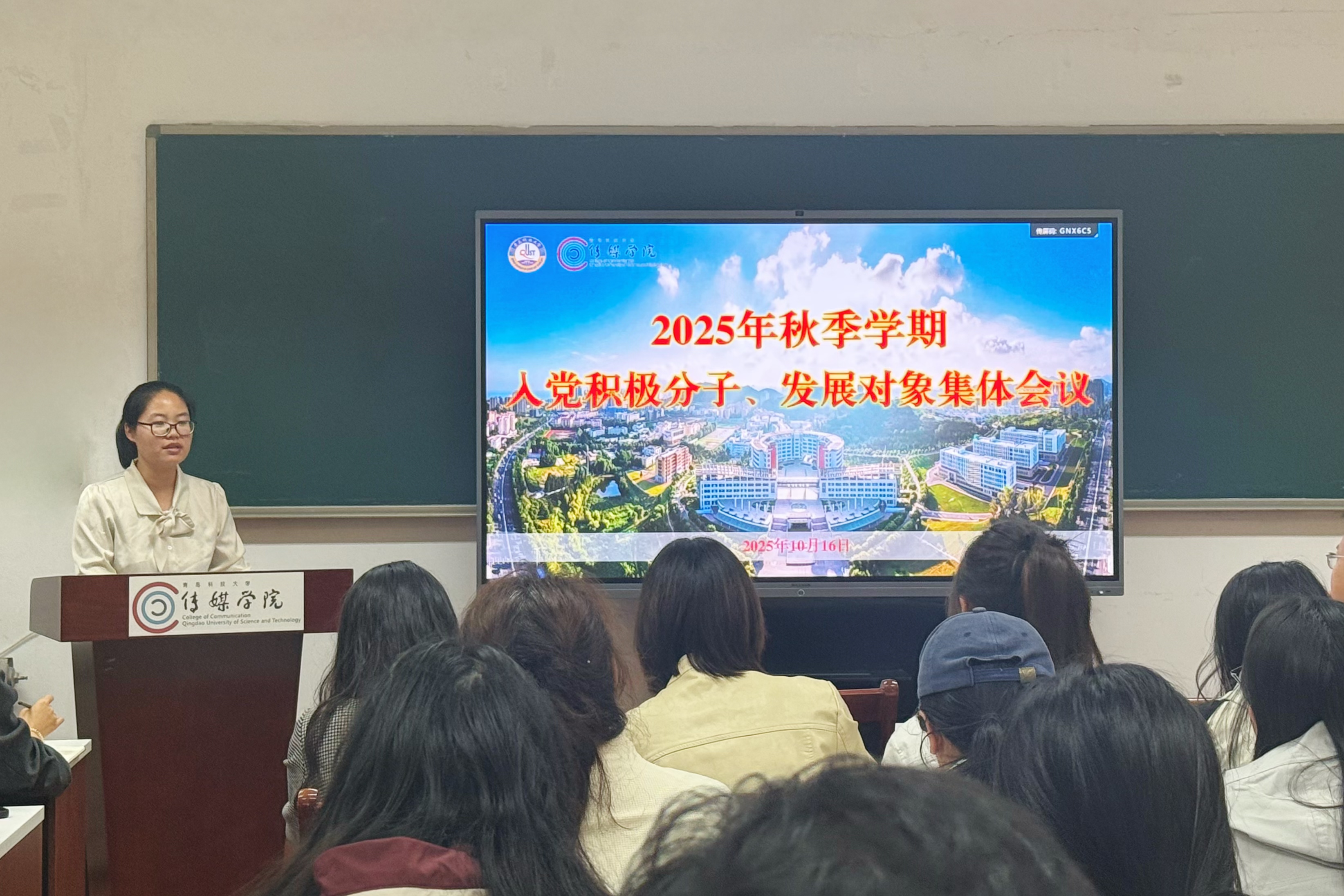 为进一步夯实组织发展基础,筑牢青年学子理想信念根基,严把党员发展“思想关”“质量关”,10月16日下午,传媒学院召开2025年秋季学期入党积极分子、发展对象培训会议。学院党委副书记兼副院长刘海波、学院团委副书记兼学工办副主任金莹莹出席会议,会议由辅导员刘福民主持。
