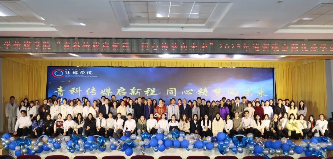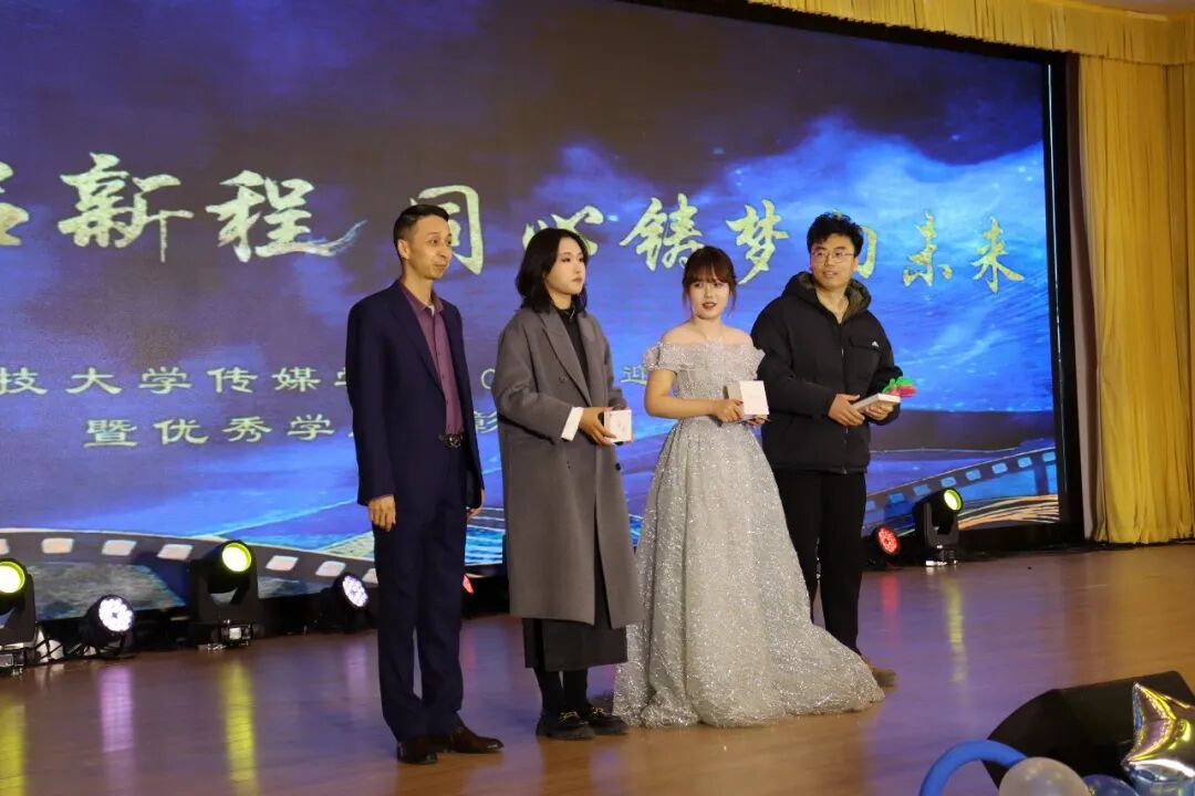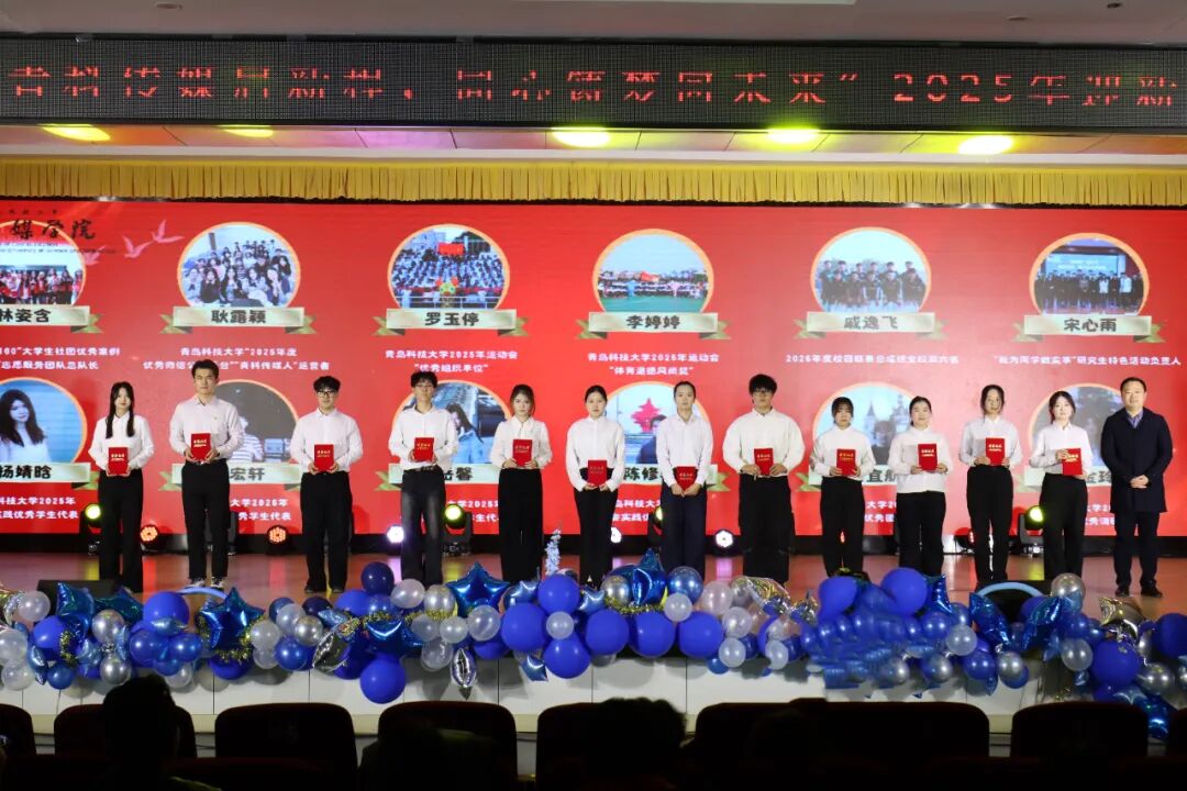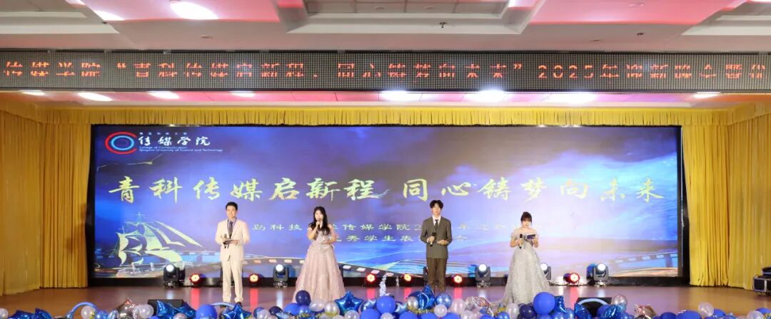 心有山海志凌云,聚力前行向新程。12月12日晚,传媒学院“青科传媒启新程,同心铸梦向未来”2025年迎新晚会暨优秀学生表彰大会在崂山校区第二报告厅举办。传媒学院党委书记孙洪广、副院长(主持工作)石晨旭、原中层副职干部钟兆秀、党委副书记兼副院长刘海波、副院长庄莹,传媒学院2009届编辑出版学专业校友青岛君巍创业投资公司总经理王振乐、合伙人潘子犇,学院相关部门负责人、系主任、班主任代表、辅导员和在校生共计400余人共赴这场青春盛宴,在光影与歌声中见证传媒学子的成长与绽放。