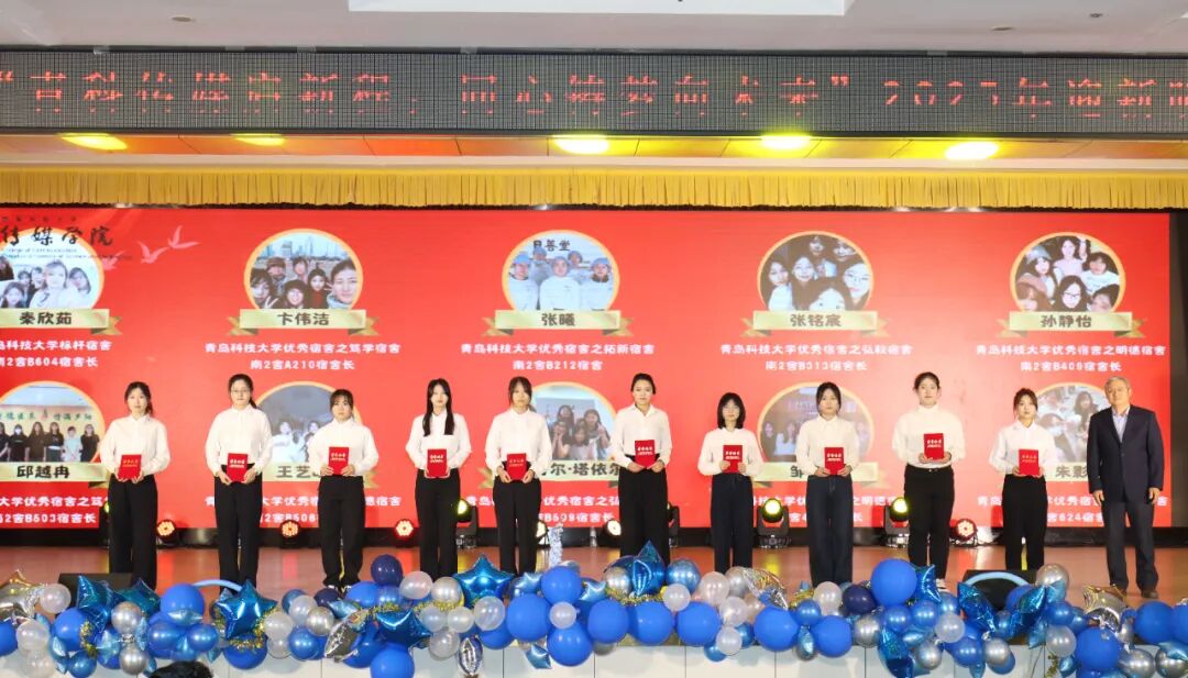 钟兆秀为荣获宿舍建设奖的10名同学颁奖