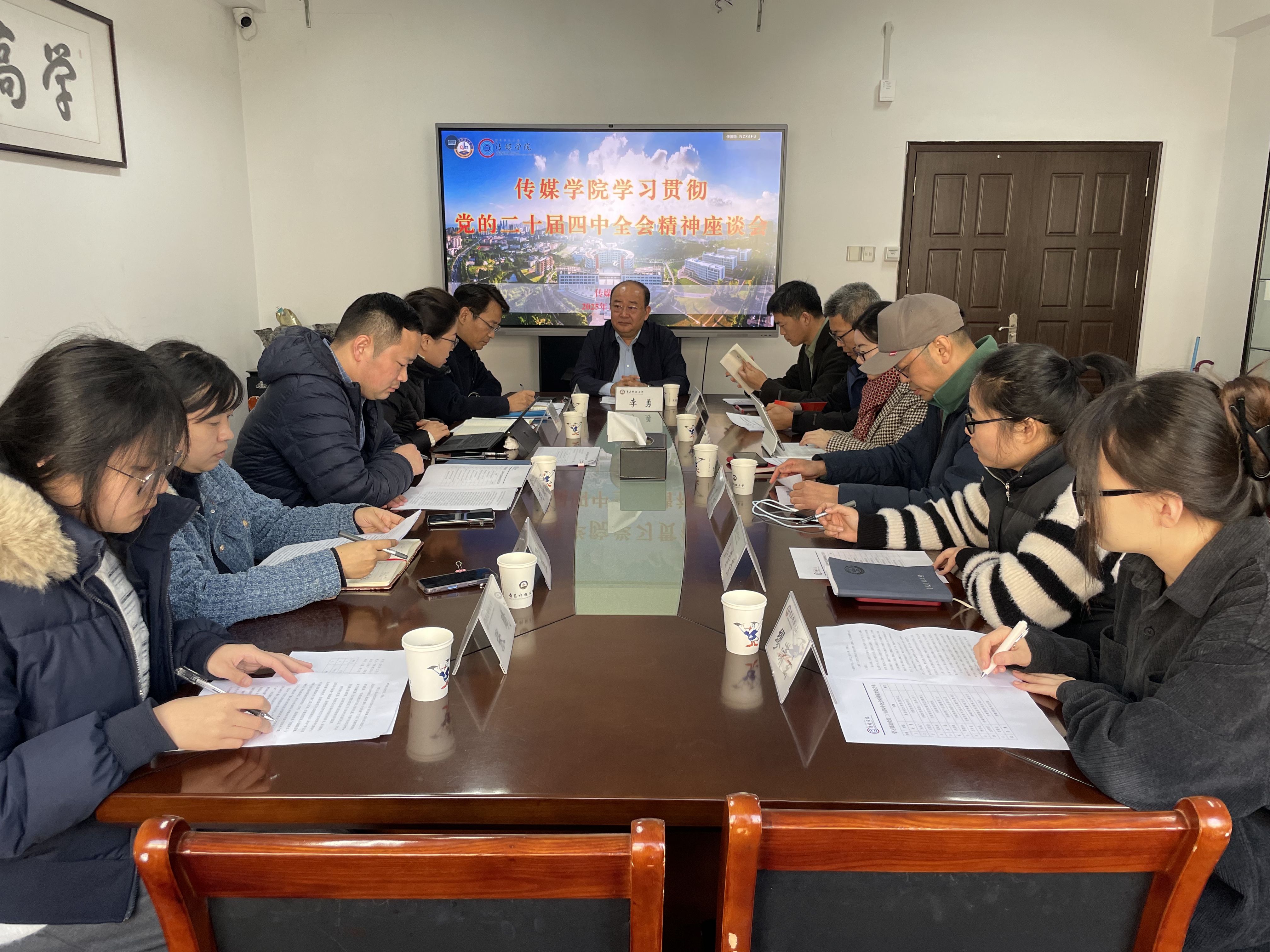 为深入学习贯彻党的二十届四中全会精神,推动全会精神落地生根,与学院工作深度融合,12月29日,传媒学院召开学习贯彻党的二十届四中全会精神座谈会。学校党委副书记李勇出席会议并讲话,学院领导班子成员、各系主任及学生代表等参加座谈。会议由学院党委书记孙洪广主持。