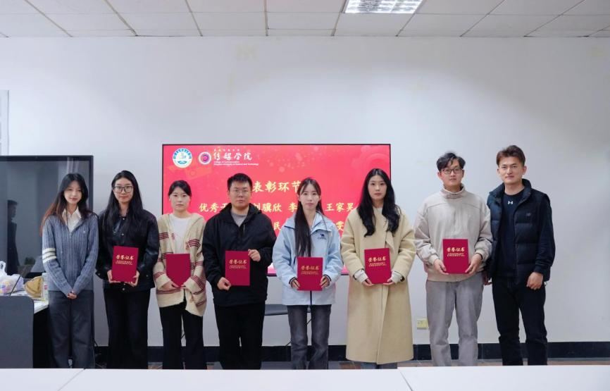 金莹莹老师充分肯定了研究生会上学期的工作成效和全体成员的辛勤付出,同时提出三点希望:一是坚定理想信念,牢记初心使命,将个人成长融入学校学院发展和时代需求;二是坚持服务为本,贴近同学、倾听心声,真正当好桥梁纽带;三是锤炼过硬本领,在实践中提升组织协调、沟通表达和解决问题的能力。希望大家以此次表彰为新起点,以先进为标杆,以奋斗为底色,在学习上追求卓越,在工作中勇于担当,在新时代展现青科传媒研究生的青春风采。
