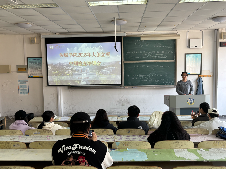 为切实做好2025年大学生创新创业训练计划项目的中期检查工作,帮助各项目团队明确检查要求、规范过程管理,4月1日下午,传媒学院在弘毅楼B201举办2025年大创立项项目中期检查专题培训会。会议由传媒学院团委副书记兼学工办副主任金莹莹主持,各项目学生负责人参加会议。