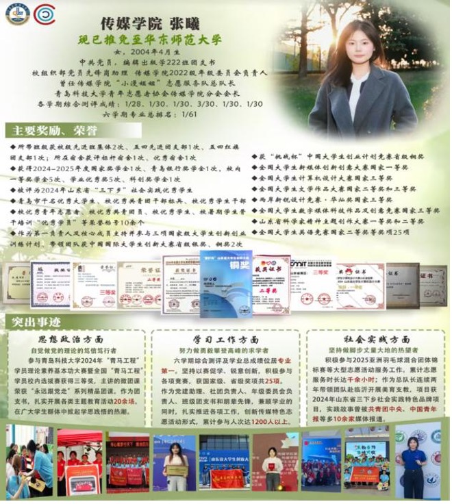 喜报!我院张曦同学获评学校第二十届“十大优秀学生”