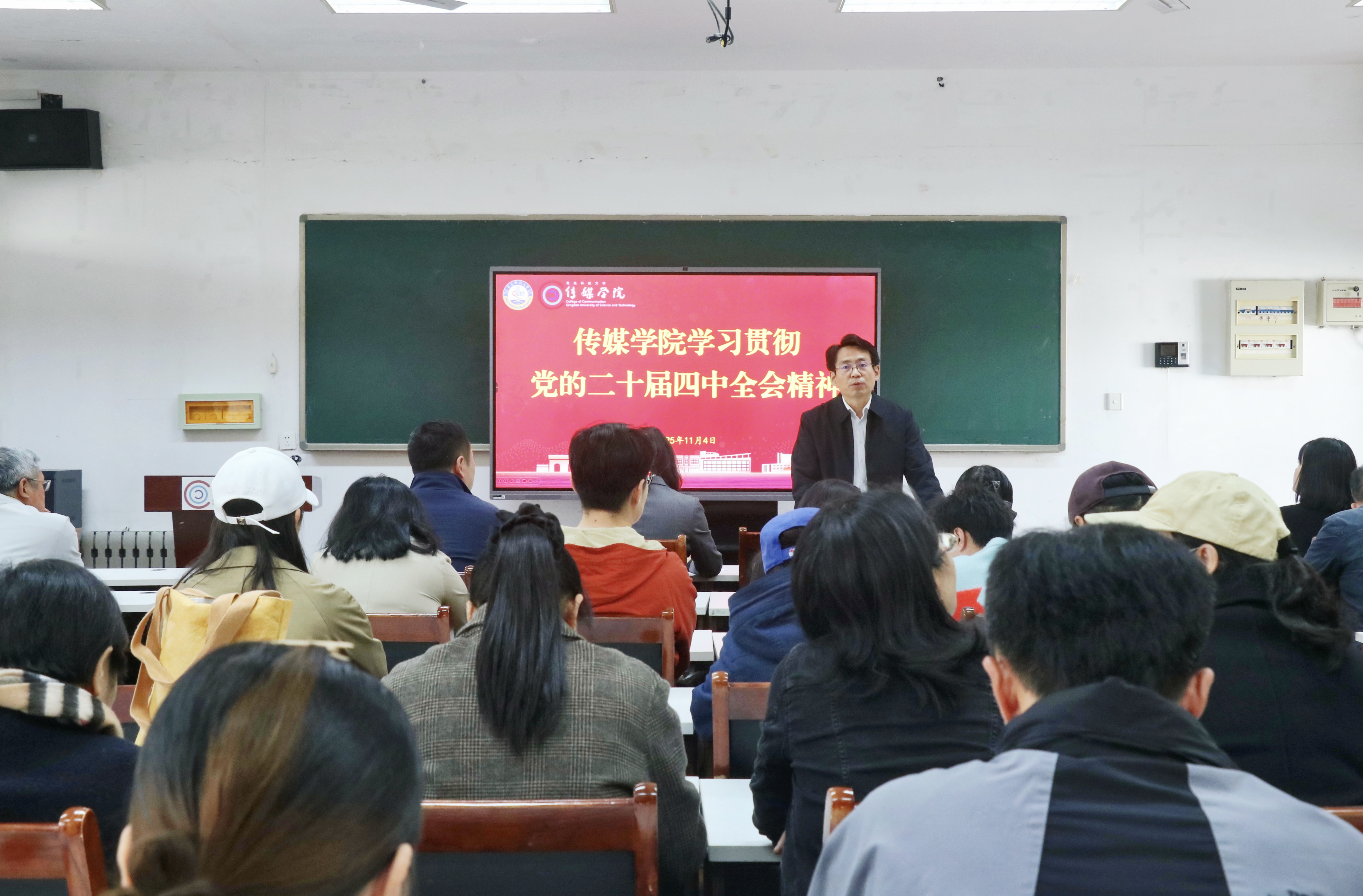 日前,传媒学院通过党委理论学习中心组集体学习、“第一议题”学习、全体教职工政治理论学习等方式,认真组织学习贯彻党的二十届四中全会精神和和习近平总书记重要讲话精神。学院党委书记孙洪广主持各项学习。
