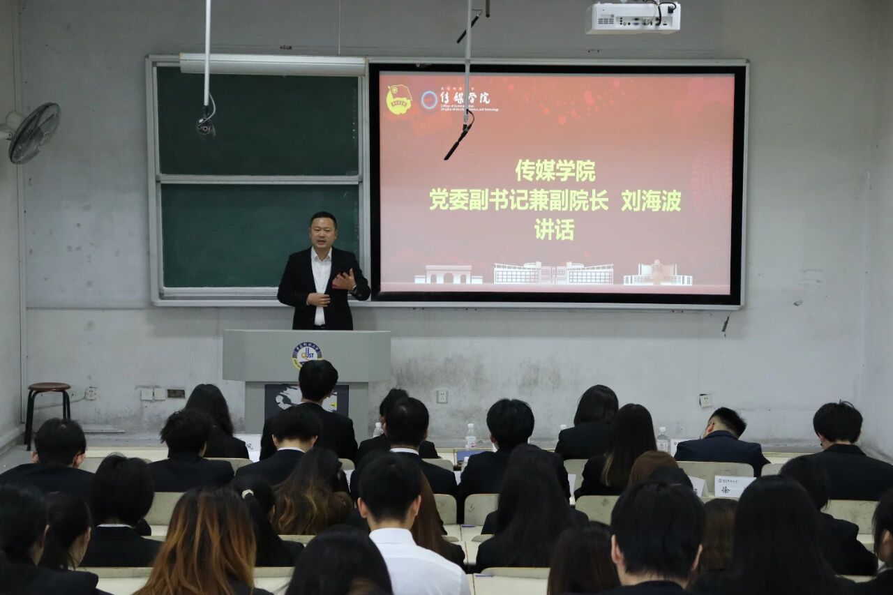 为深入学习贯彻党的二十届四中全会精神,践行新时代青年使命担当,11月22日下午,传媒学院第九次学生代表大会、第七次研究生代表大会于弘毅楼E102召开。学院党委副书记兼副院长刘海波,团委副书记兼学工办副主任金莹莹、张鸣,团委老师赵岩、刘福民、张凤,校学生会代表宋禹呈,各兄弟学院代表及传媒学院全体学生代表、研究生代表参加大会。大会由院学生会执行主席罗玉停主持。