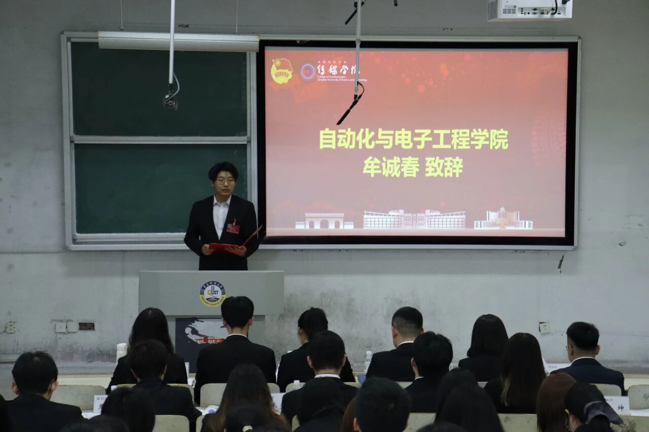 自动化与电子工程学院代表牟诚春致贺词,他表示,传媒学院学生会始终与各学院紧密协作、同心同行,聚力搭建跨院交流桥梁,共促校园文化共融共进,巩固了各学院之间的深厚友谊。希望两院学生会今后缪力同心,和衷共济,共同助力两院学院学生会工作取得更大的进步。