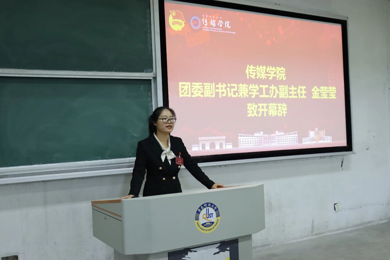 金莹莹致开幕辞。她回顾了上一届学生会、研究生会在思想引领、校园文化、权益服务等方面取得的显著成效,号召新时代青科传媒学子坚定理想信念、夯实专业本领,提升服务、深化创新、团结师生,在传播党的声音、抓紧学业成绩、做好学生工作等方面走在前、当先锋、作表率,切实为学校高质量发展贡献传媒学子力量。
