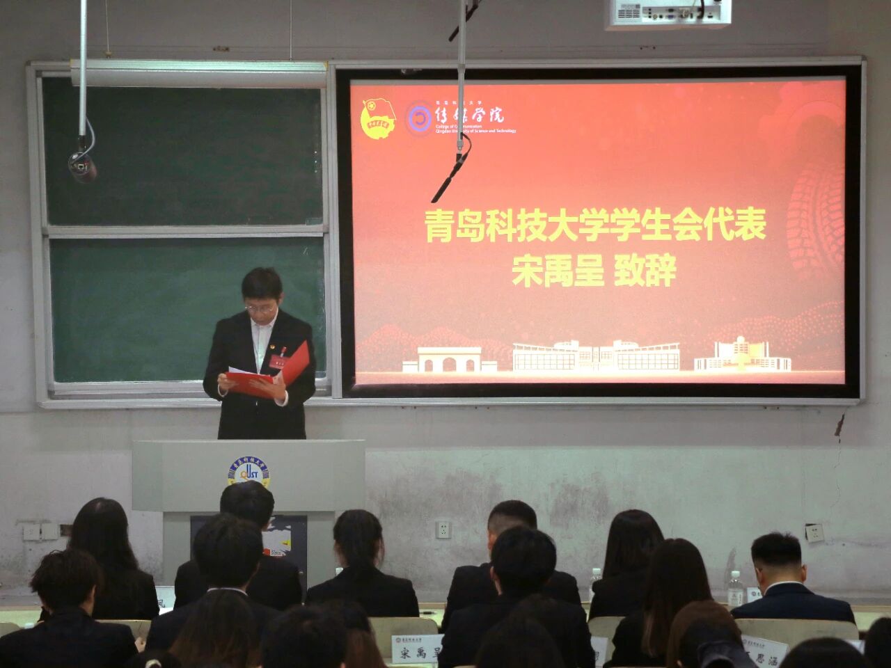 校学生会代表宋禹呈致贺词,他表示,传媒学院学生会切实发挥桥梁纽带作用,与各学院建立了良好的合作关系,学生会工作取得了长足发展,相信本次大会的召开,必将推动传媒学院学生会工作更上新台阶,不断提升同学们幸福感和参与感。