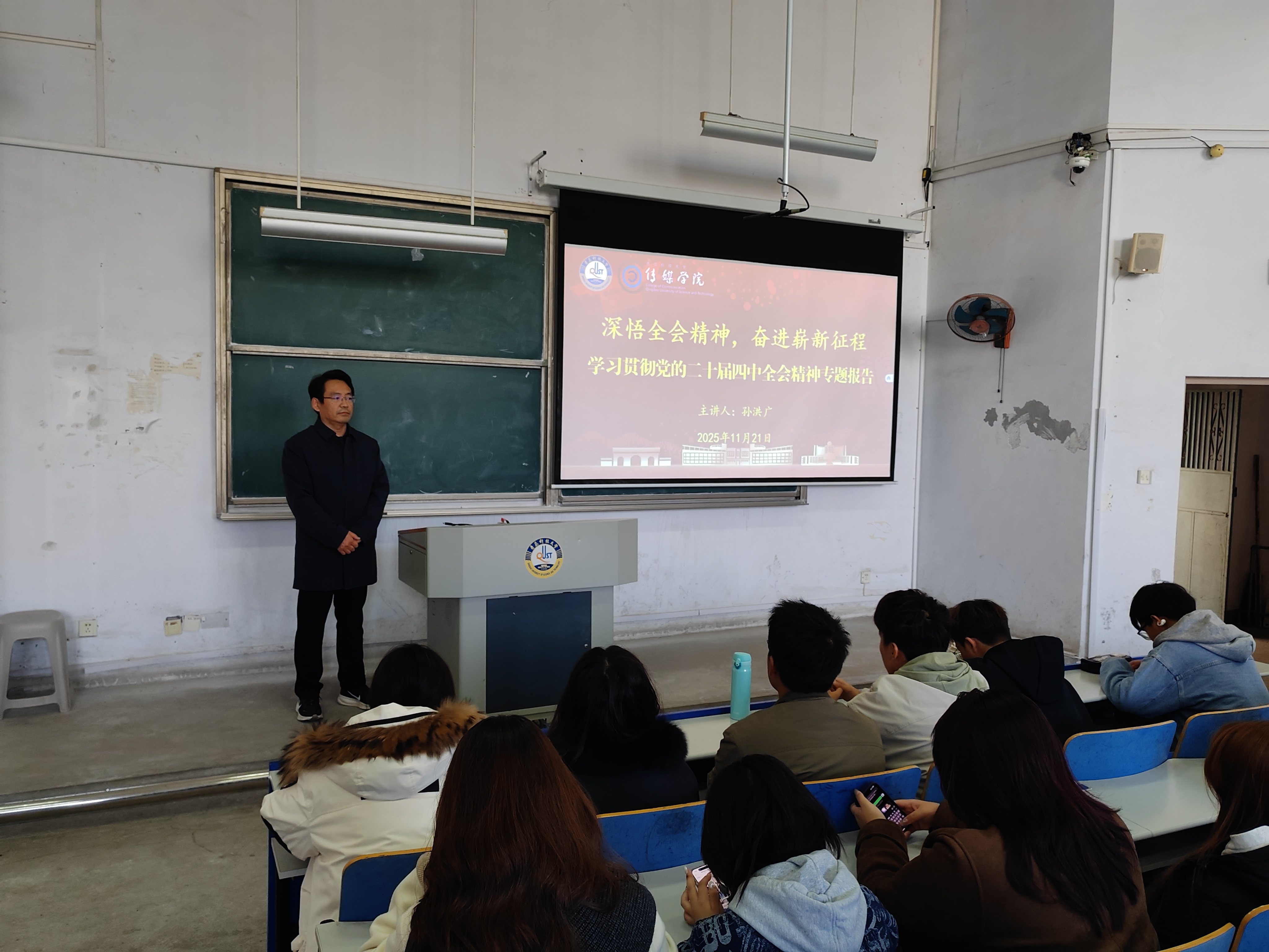 11月21日下午,传媒学院党委书记孙洪广以《深悟全会精神、奋进崭新征程》为题,为学院青年学生代表作学习贯彻党的二十届四中全会精神专题报告。