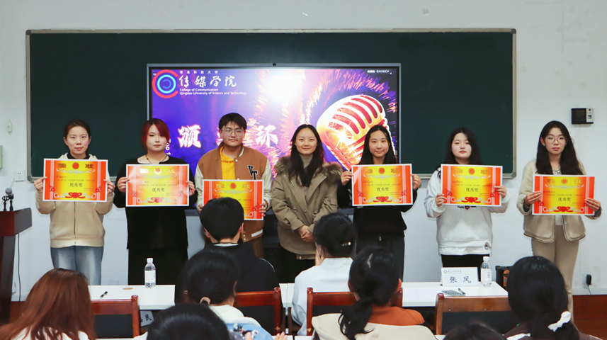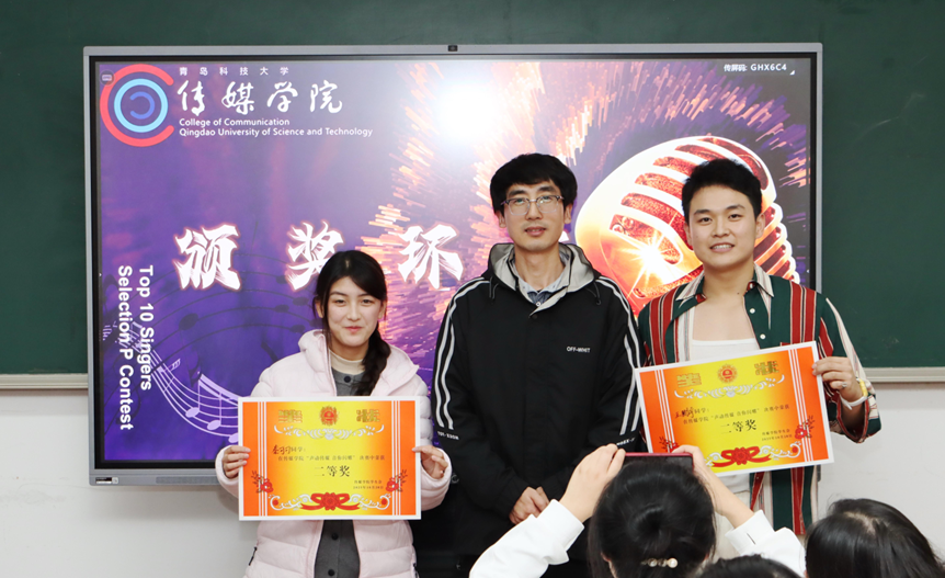 由“崂山区十大歌手”、外国语学院日语221班陈启洲,艺术学院音乐241班王世玉、王逸飞三位学生评委围绕音乐专业度、舞台表现力、创意呈现、情感表达等维度综合打分,最终评选出一等奖1名、二等奖2名、三等奖4名及优秀奖6名,老师们为获奖选手现场颁奖。本次大赛以音乐为纽带,既为校园文化注入了鲜活活力,也展现了传媒学院深耕文化育人的成果。未来,学院将持续搭建更多优质校园文化平台,让青年学子在艺术熏陶中绽放青春光彩。