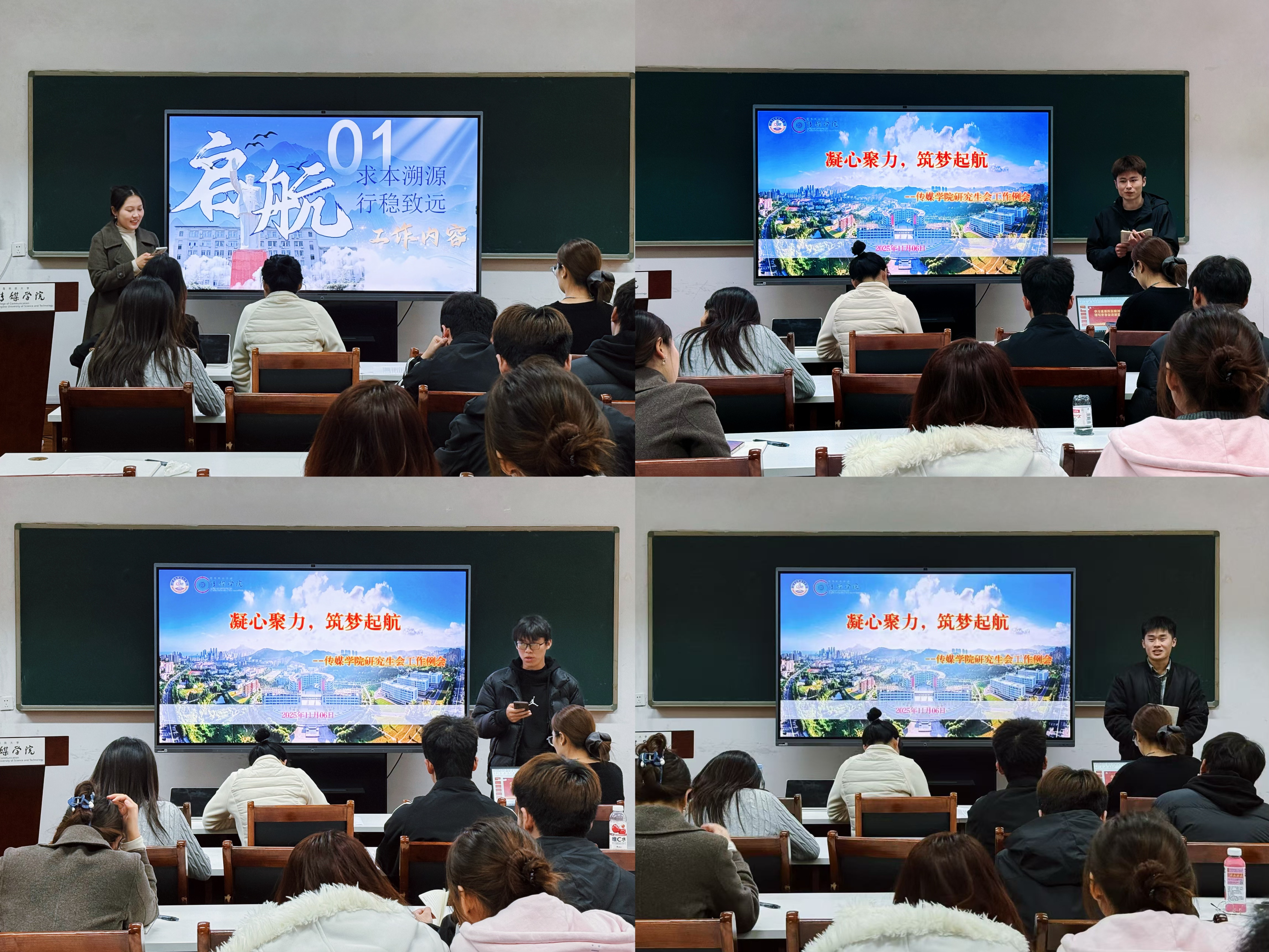 为进一步夯实学院研究生会骨干队伍建设根基,凝聚研会团队协作力量,近期,传媒学院研究生会开展“凝心聚力,筑梦起航”工作例会,学院团委副书记兼学工办副主任金莹莹及研究生会全体成员参加本次会议。